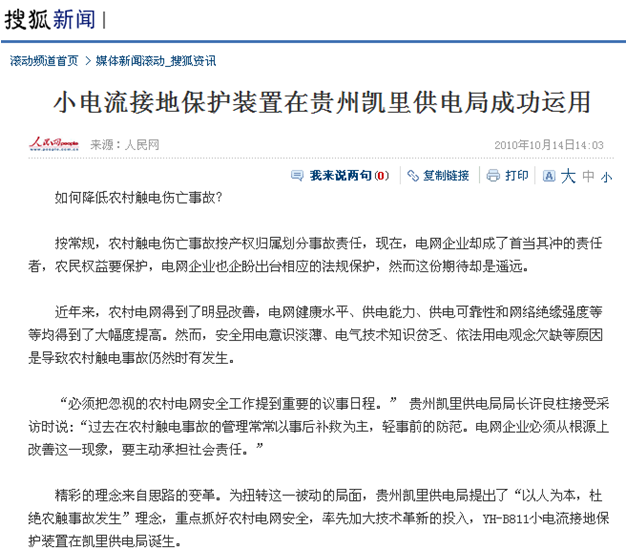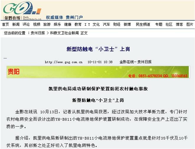 同年10月、11月,贵州日报、贵州电力新闻网和搜狐新闻相继报道了YH-B811装置在贵州的应用情况。