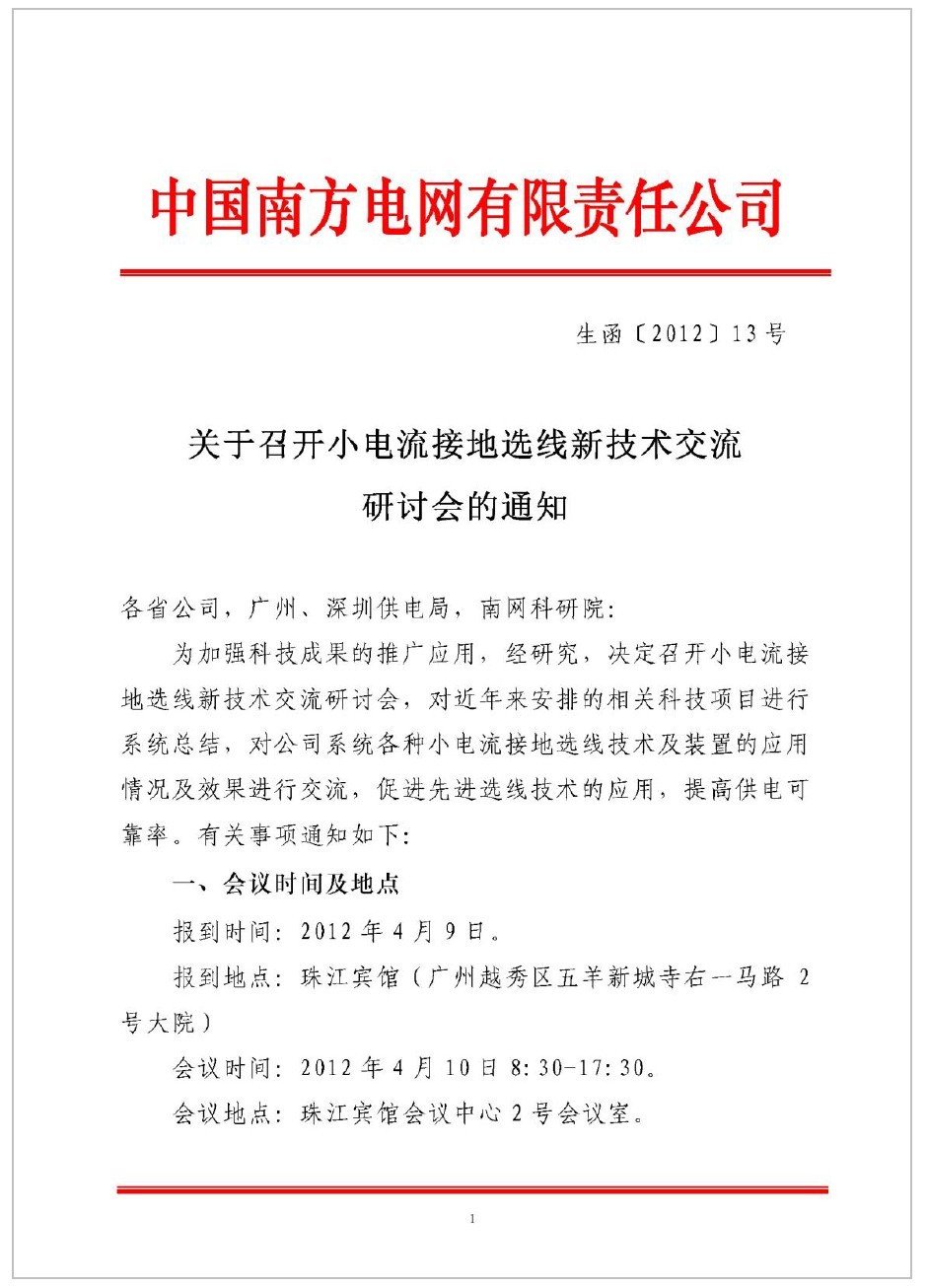 为了加强科技成果的推广应用,南方电网公司于2012年4月10日在广州召开小电流接地选线新技术交流研讨会。南网公司生技部、农电部、南网科研院、各省公司、广州供电局和深圳供电局的有关人员参加了会议,与会单位还包括国内一流小电流设备生产厂家,如广西星宇、山东科汇、山大电力、上海思源等。我国著名电力专家、西安交通大学张保会教授作为特邀嘉宾出席本次会议。